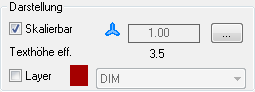 Schaltet die Skalierbarkeit des Objektes ein. Bei eingeschalteter Skalierbarkeit, wird der Beschriftungsmaßstab des aktuellen Bereiches (Modell bzw. Layoutansichtsfenster) verwendet um die Größe der Beschriftung zu steuern. Bei deaktivierter Skalierbarkeit, können Sie den aktuellen Skalierfaktor im Eingabefeld angeben.