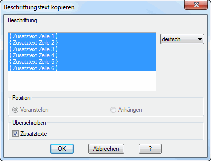 Dialogfeld Beschriftungstext kopieren