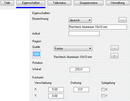 Registerkarte Eigenschaften bei Bauteiltyp Rotation