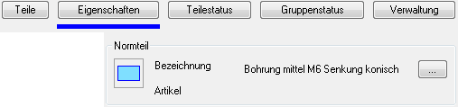 Registerkarte Eigenschaften bei Bauteiltyp Bohrung