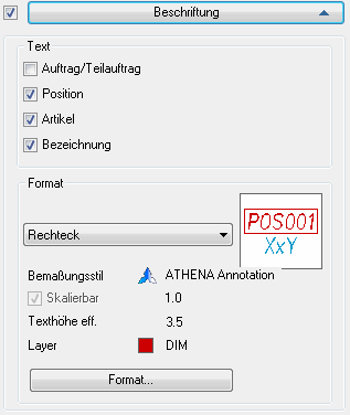 Die effektive Texthöhe wird berechnet aus der Texthöhe des Bemaßungsstils und dem Beschriftungsmaßstab bzw. der Skalierung der Bemaßung.