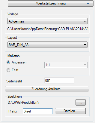 Definiert den Dateipräfix der Werkstattzeichnungen. Der Dateiname setzt sich zusammen aus: Präfix sowie Auftragsbezeichnung und Teilenummer aus der Positionierung. Wurde keine Positionierung durchgeführt, wird der Dateiname automatisch generiert.
