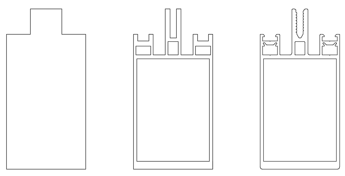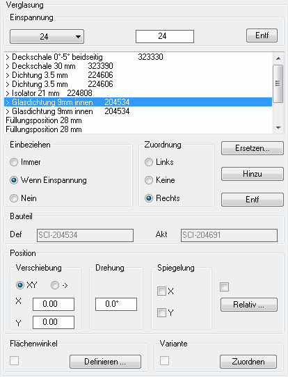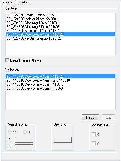 – Verglasungen, also Baugruppen deren Bauteile abhängig von der Glasdicke geändert oder verschoben werden. Anwendungsbeispiel: Riegel, in den verschieden dicke Gläser eingespannt werden können.