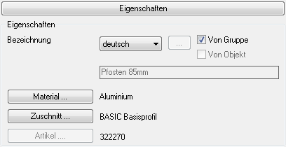 Hier definieren Sie die Eigenschaften des aktuellen Bauteiles.