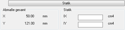 Hier können die Konstruktionsparameter für die gewählte Konstruktion den statischen Erfordernissen entsprechend angepasst werden. Abhängig von der gewählten Konstruktion, sind die jeweils benötigten Eingabefelder freigeschaltet.