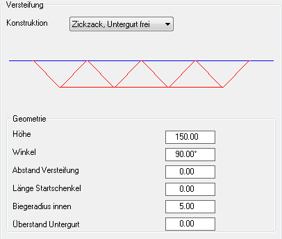 Ist der Abstand vom Achsende des Untergurtes zum Anfang der zickzack-förmigen Versteifung.