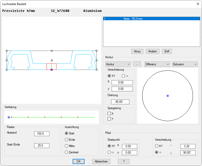 Definiert Lochraster für Bauteile von Stabbaugruppen. Ein Lochraster ist eine regelmäßige Bearbeitung eines Bauteils. Ein Beispiel wäre ein Winkel, der mit regelmäßiger Lochung bezogen werden kann.