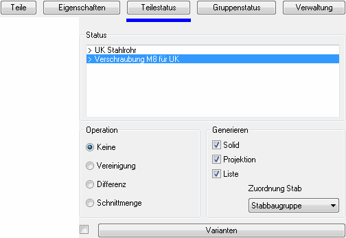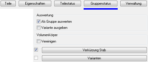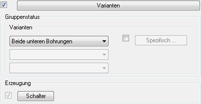 Die entsprechenden Schalter und Kriterien für die Varianten der Baugruppe müssen zuvor unter der Registerkarte Gruppenstatus definiert worden sein. Weitere Informationen finden Sie im Kapitel Baugruppenvarianten.