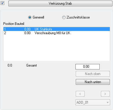 Hier können Sie die Verkürzungen eines Stabes definieren, wenn die Baugruppe einem solchen zugeordnet wird.