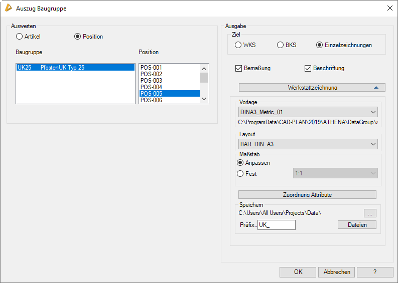 Erstellt Auszüge der Baugruppen nach Positionsnummer.
