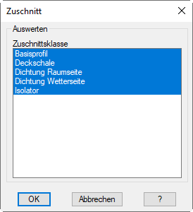 Diese Eingabeaufforderung wird wiederholt, bis Sie die Objektwahl durch Drücken der Eingabetaste abschließen. Dann wird das Dialogfeld Zuschnitt angezeigt: