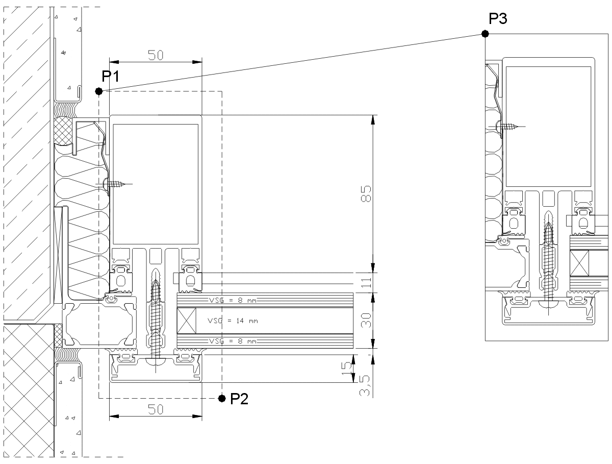 Wählen Sie die Objekte die Sie kopieren möchten, indem Sie den ersten diagonalen Eckpunkt mit der Maus angeben; siehe Abbildung Detail kopieren P1.