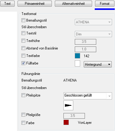 Für Führungstexte werden standardmäßig die Einstellungen des aktuellen Bemaßungsstils verwendet. Hier können Sie einzelne Stileinstellungen überschreiben.