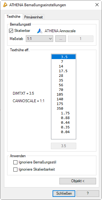 ATHENA > Bemaßung > Bemaßungseinstellungen ändern