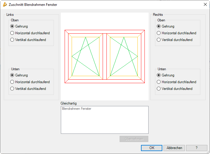 Verwaltet die Zuschnitte in den Elementecken für gleichartige Einsatzelemente.