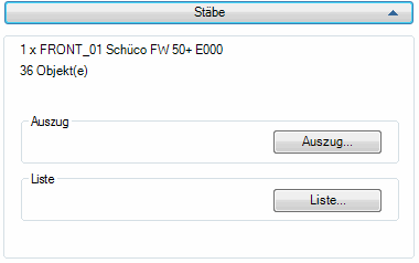 Zur Info wird der Name und die Bezeichnung des aktiven Einsatzelementes sowie die Anzahl der Profilstäbe angezeigt.