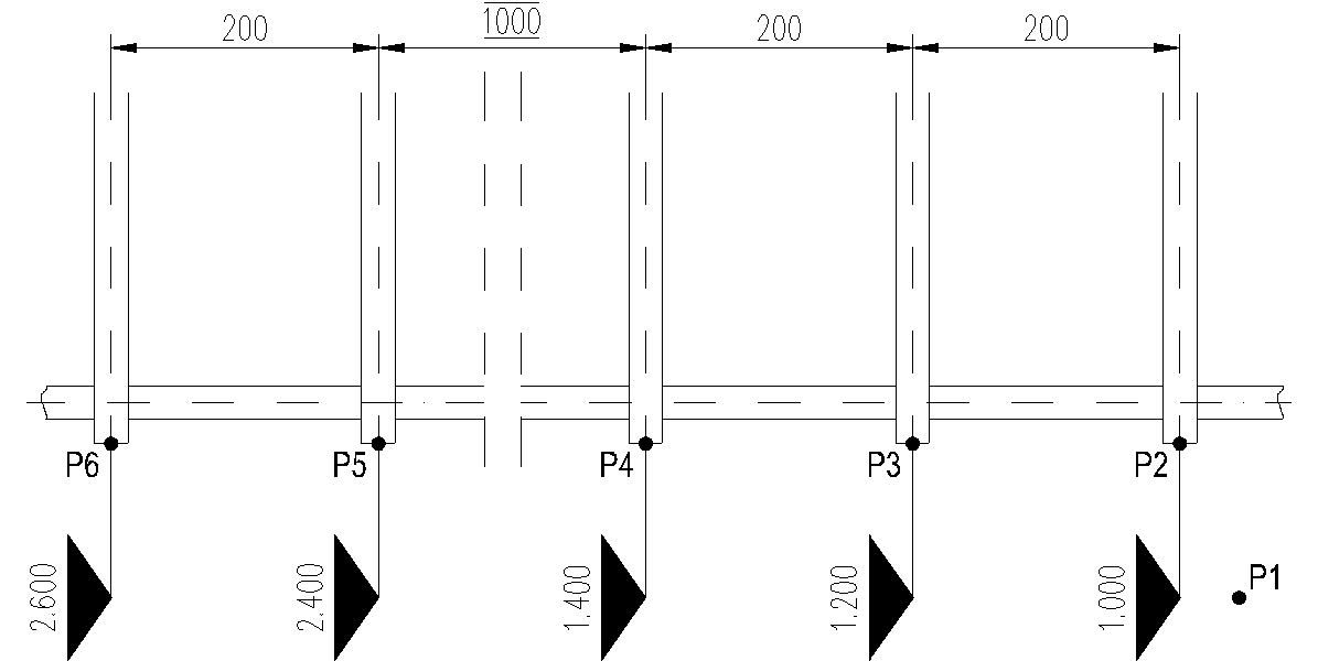 Geben Sie einen Punkt durch Klicken mit der Maus oder Eingabe der Koordinaten an um die vertikale Lage der Höhenkoten zu bestimmen; siehe Abbildung Horizontale Höhenkoten P1.