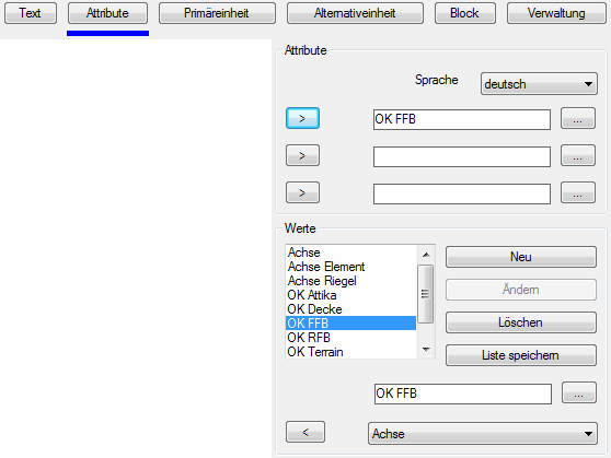 Dialogfeldbereich Attribute