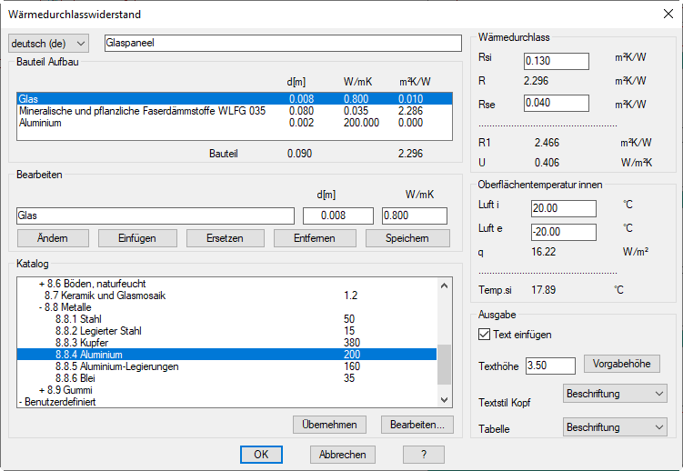 Dialogfeld Wärmedurchlasswiderstand