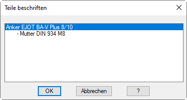 • Die Einstellung der Teilebeschriftung können Sie für jedes Teil vornehmen, indem Sie im jeweiligen Dialogfeld die Schaltfläche Beschriftung ... anklicken. Informationen dazu finden Sie im Kapitel Beschriftung.