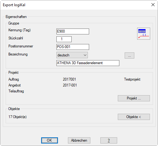 Wählen Sie die Objekte, die Sie als Position an LogiKal übergeben möchten.