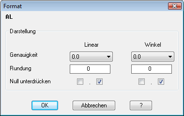 Definiert die Genauigkeit für lineare Zahlen und Winkel. Sie können die gewünschte Genauigkeit im Listenfeld wählen.