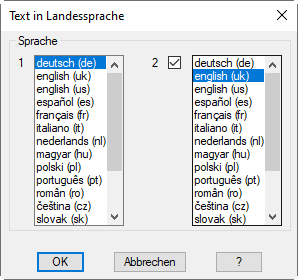 Die zweisprachige Textdarstellung ist nur bei Führungen und Teilebeschriftungen möglich! Bei einzeiligen Texten, Absatztexten und Attributtexten ist diese Einstellung ohne Wirkung.