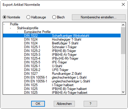 Mit dieser Funktion exportieren Sie eine zu wählende Normteilgruppe in die Zwischenablage.