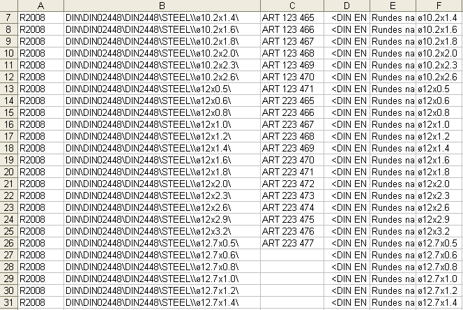 Spalte B darf nicht geändert werden, da es sich um die Normteilschlüssel handelt! ATHENA berücksichtigt beim Import nur die Spalten B und C!