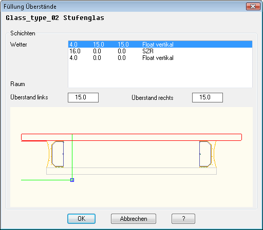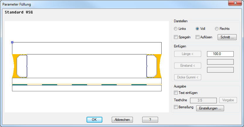 Hier können Sie die Schnittdarstellung und die Eigenschaften von Füllungen festlegen.