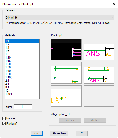 ATH Block > Planrahmen einfügen ATHENA Block > Planrahmen einfügen