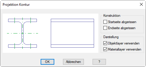 Dialogfeld Projektion Kontur