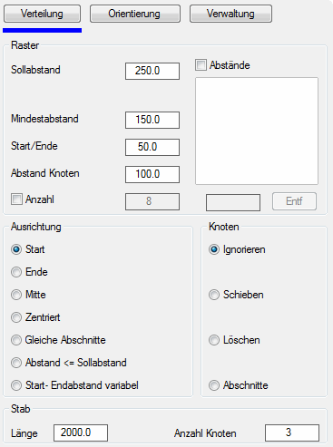 Erstellt eine Verteilung mit festem Start- und Endabstand. Die Abstände werden aus dem angegebenen Start- und Endabstand sowie dem Sollabstand berechnet.