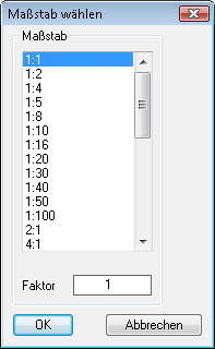 Wenn Sie das Dialogfeld mit OK beenden wird der gewählte Maßstab verwendet. Mit Abbrechen wird der vorherige oder vordefinierte Maßstab (1:1) verwendet.