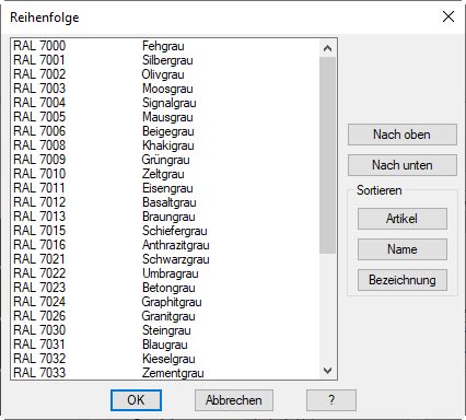 Dialogfeld Reihenfolge