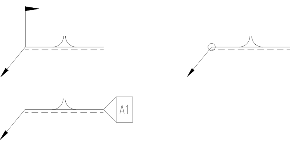Bestimmen Sie den nächsten Punkt (Knickpunkt der Führungslinie) des Schweißsymbols. Diese Eingabeaufforderung wird wiederholt. Drücken Sie die Eingabetaste um den Befehl zu beenden.