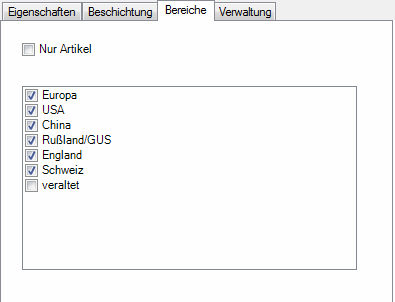 Listet alle verfügbaren Bereiche auf. Hier können Sie mittels Schaltern steuern, aus welchen Bereichen die Produkte angezeigt werden sollen.