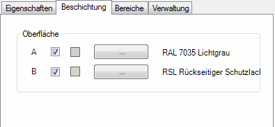 Im Dialogfeld finden Sie auf der linken Seite den Darstellungsbereich mit der Vorschau. Auf der rechten Seite sehen Sie den Bedienbereich mit den Registerkarten Eigenschaften, Beschichtung, Bereiche und Verwaltung.
