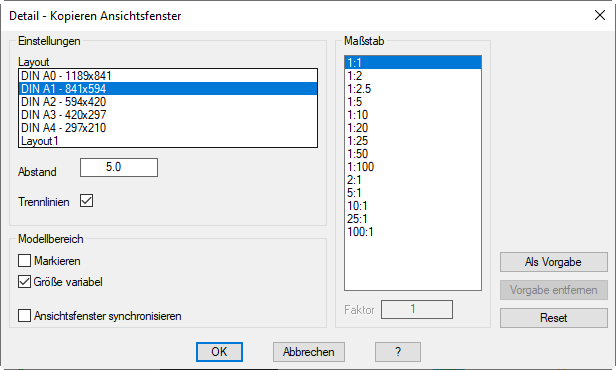 Dialogfeld Detail - Kopieren Ansichtsfenster