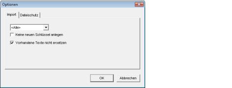 Auswahlfeld Sprachen Bestimmt die Sprache die importiert werden soll.