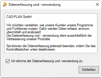 Die Datenerfassung und -verwendung dient der Verbesserung zukünftiger ATHENA Versionen. Deaktivieren Sie den Schalter daher nur, wenn Sie damit nicht einverstanden sind.