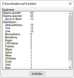 Es folgt ein Dialogfeld, welches die behandelten Objekte auflistet.
