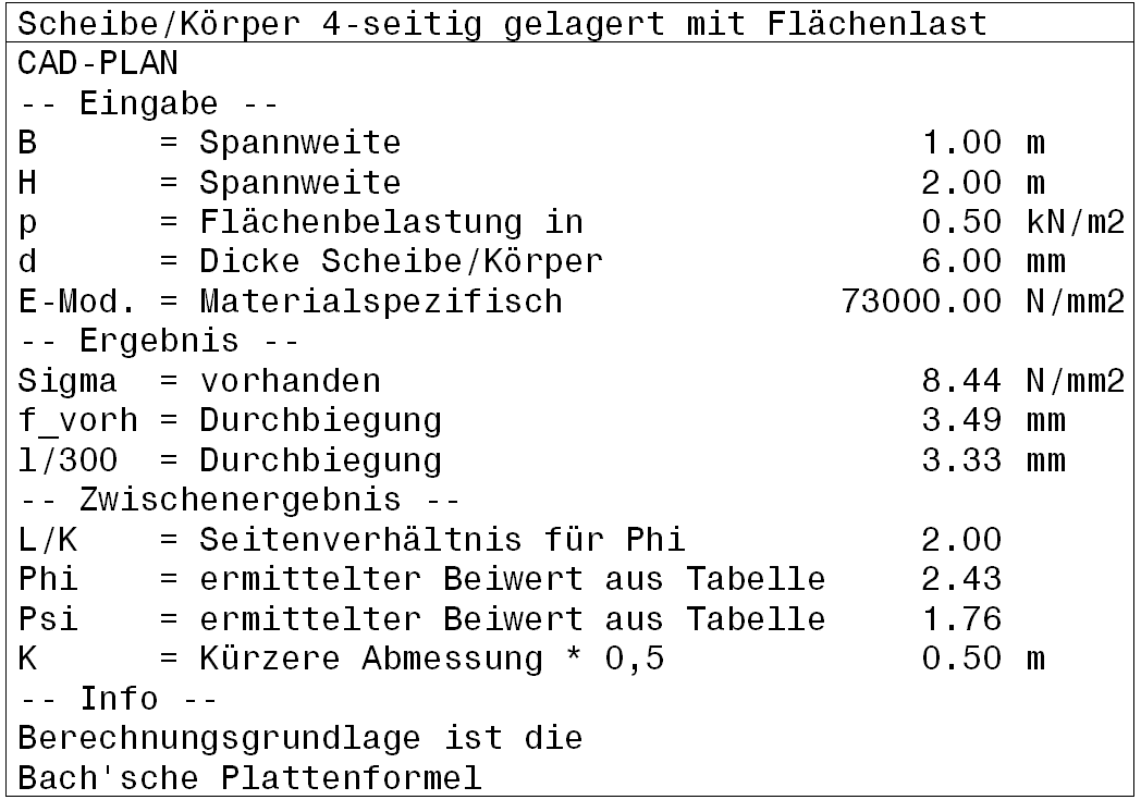 Abb. 7.5: Dicke Scheibe/Körper Ergebnistext