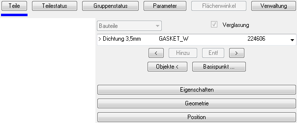 Dialogfeldbereich Bauteile