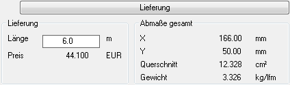 Hier können die Konstruktionsparameter für die gewählte Konstruktion den statischen Erfordernissen entsprechend angepasst werden. Abhängig von der gewählten Konstruktion, sind die jeweils benötigten Eingabefelder freigeschaltet.