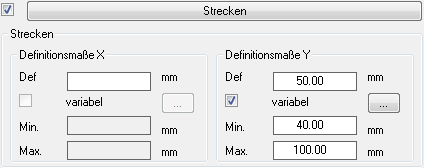 Dialogfeldbereich Strecken X
