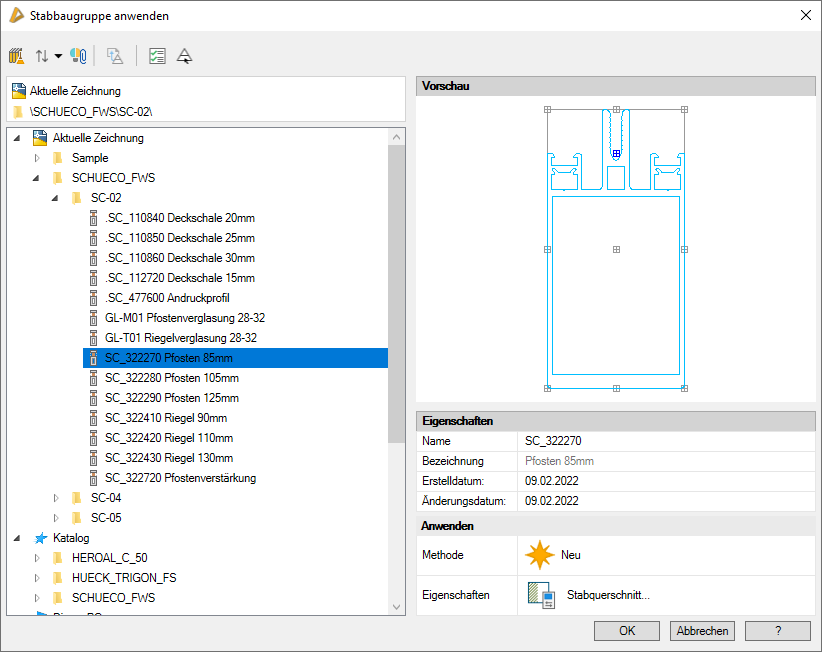Wählen Sie hier die Stabbaugruppe, die Sie in der Zeichnung verwenden möchten.