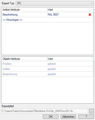 Menü: | Modellieren > Auswerten > Export BIM |