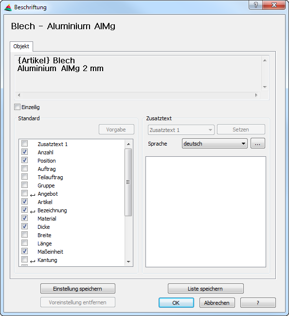 Sie starten das Dialogfeld indem Sie im Dialogfeld des jeweiligen Teiles die Schaltfläche Beschriftung ... anklicken.