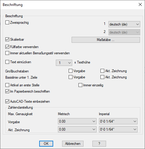 | Der verwendete Layer für Beschriftungen kann im Dialogfeld Systemlayer im Pulldownmenü Bemaßung geändert werden. |